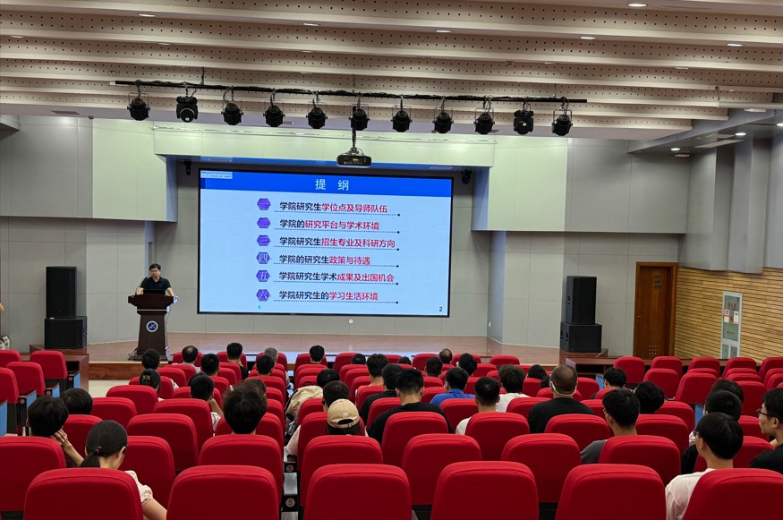 王迎超从学院研究生学位点及导师队伍、研究平台与学术环境、研究生招生专业及科研方向、研究生政策与待遇、研究生学术成果及出国机会、研究生的学习生活环境六个方面详细介绍了学院情况。