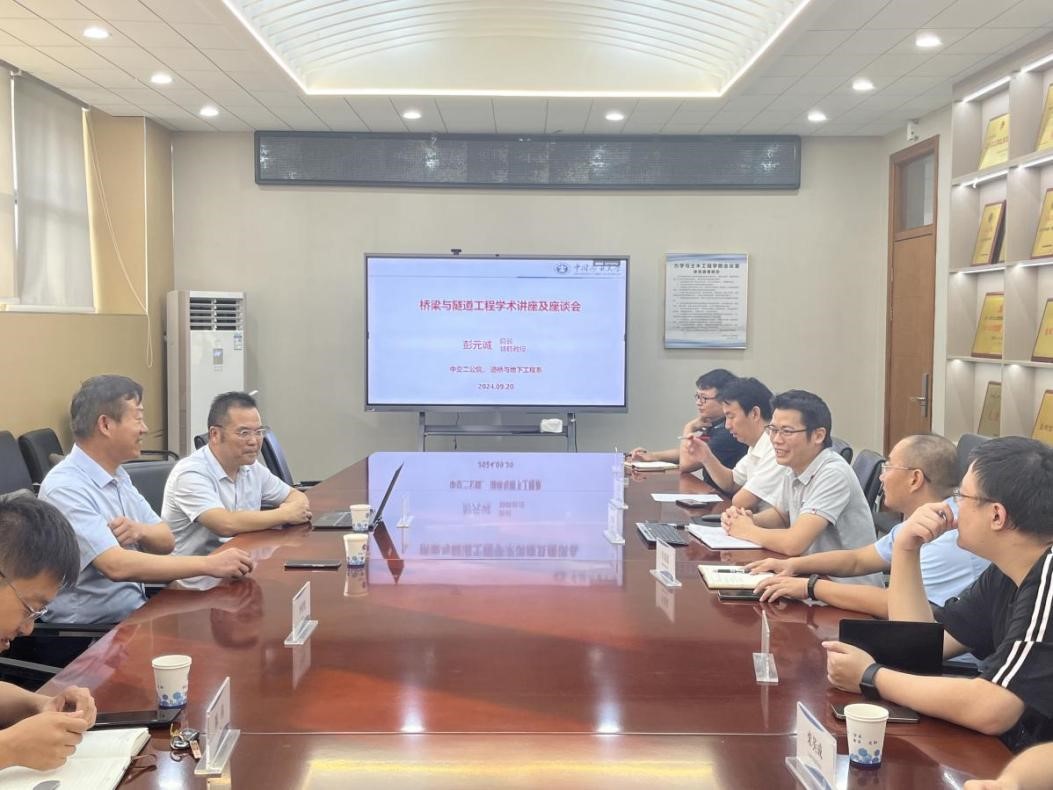 为加速新质生产力发展,深化科教融汇、产教融合,推动校企精准对接与合作创新,9月20日中交二公院首席专家、学院特聘教授彭元诚来学院开展了学术交流及校企合作座谈会。院党委书记马占国、院长李树忱、建筑工程系陈伟教授、道桥与地下工程系老师共同探讨桥隧方面新型复杂工程问题及校企合作模式。