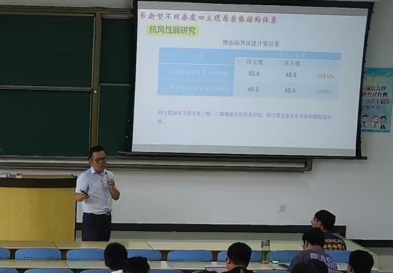 学生进行现场授课,所授课程包括《桥隧结构健康监测》、《土木水利专题讲座》等,深度剖析了土木工程发展新环境下企业创新理念、前沿技术和一系列工程案例,将企业路桥隧先进生产和研发技术引入课堂,内容丰富生动,极大开阔了学生视野。