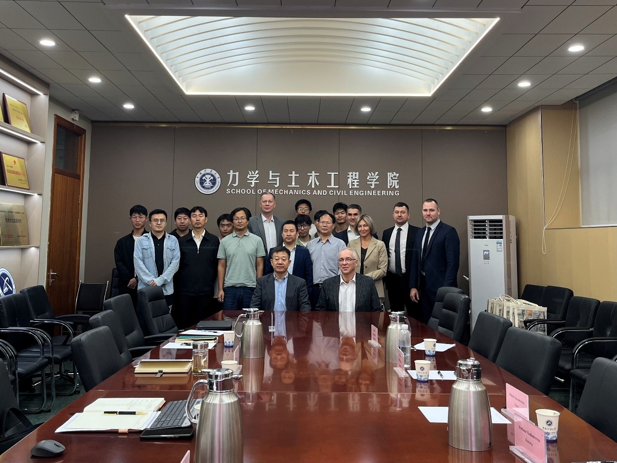 ,并进行座谈。学院党委书记马占国、副院长顾正虎、王建国教授、刘书奎副教授、王其昂副教授、孙钧宇老师在学院楼A220会议室会见代表团一行。