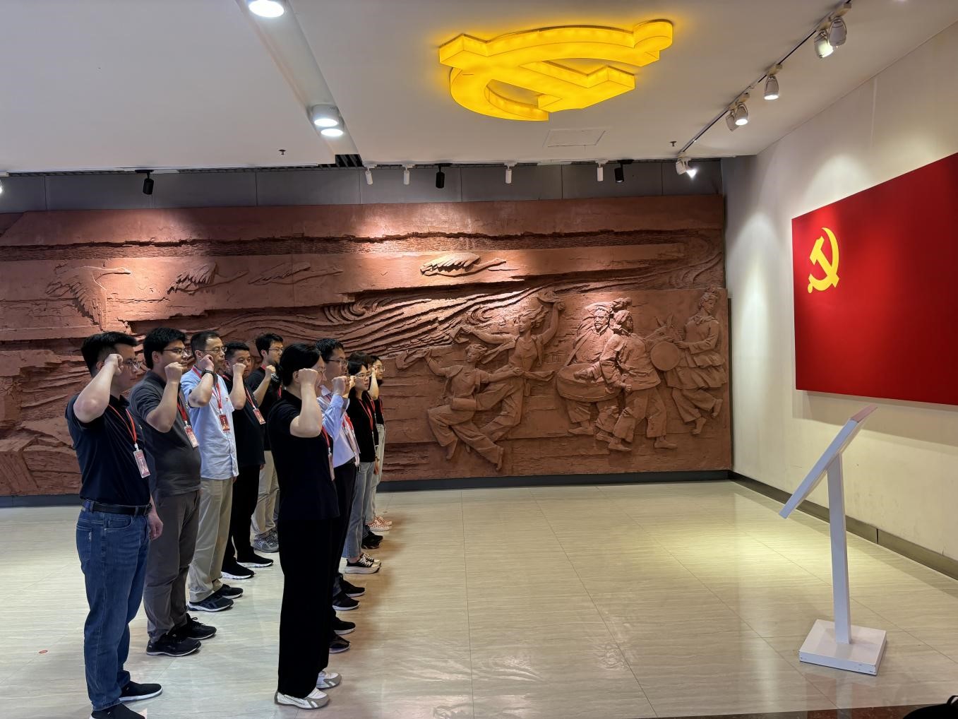 兰考,是焦裕禄精神的发源地。在兰考,焦裕禄带领当地群众筑堤修渠,打造生态防护林,根除了“风沙、内涝、盐碱”三害。在焦裕禄纪念馆,党员们参观焦裕禄铜像、群雕和焦裕禄当年带领广大人民战天斗地的劳动情景画面、照片等,学习领会了焦裕禄同志在兰考心系百姓、根治“三害”的革命精神。在宣誓大厅,大家整齐肃立,面向鲜红的党旗,举起右手,重温入党誓词。铮铮誓言有力诠释着力学系党员在新时代新征程,坚定信念、严守党纪、踔厉奋发的信心和决心。