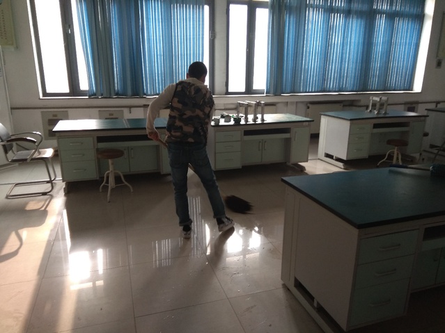 下午1点50分左右参与本次志愿活动的同学们陆续来到理学院楼大厅集合并签到。下午2点正式开始了清理活动,在老师的安排和引导下同学们分散至各个实验室以及会议室打扫卫生,将窗台、实验台、桌子、椅子、地板以及各个角落全部都进行了认真仔细的清理打扫,尽力达到不留一丝灰尘的目标。实验室和会议室全部清理完成后,同学们在老师的指导下做好了善后工作,顺利地完成了本次活动,获得了老师的感谢与表扬。