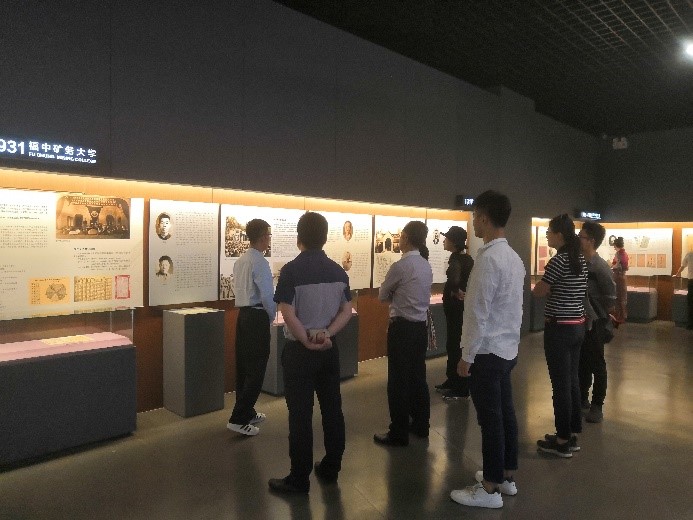诞生的焦作路矿学堂纪念建筑前面合影留念,然后在党员的组织下进入了校史馆参观。同学们都表现得十分积极,一边认真地听讲解员介绍,一边仔细地观察场馆内陈列的物品。“我被学校艰辛的成长之路所感动,为学校的飞速发展和校友们取得的非凡成就而感到深深的自豪!”参观过后,党员董志锦感慨道。