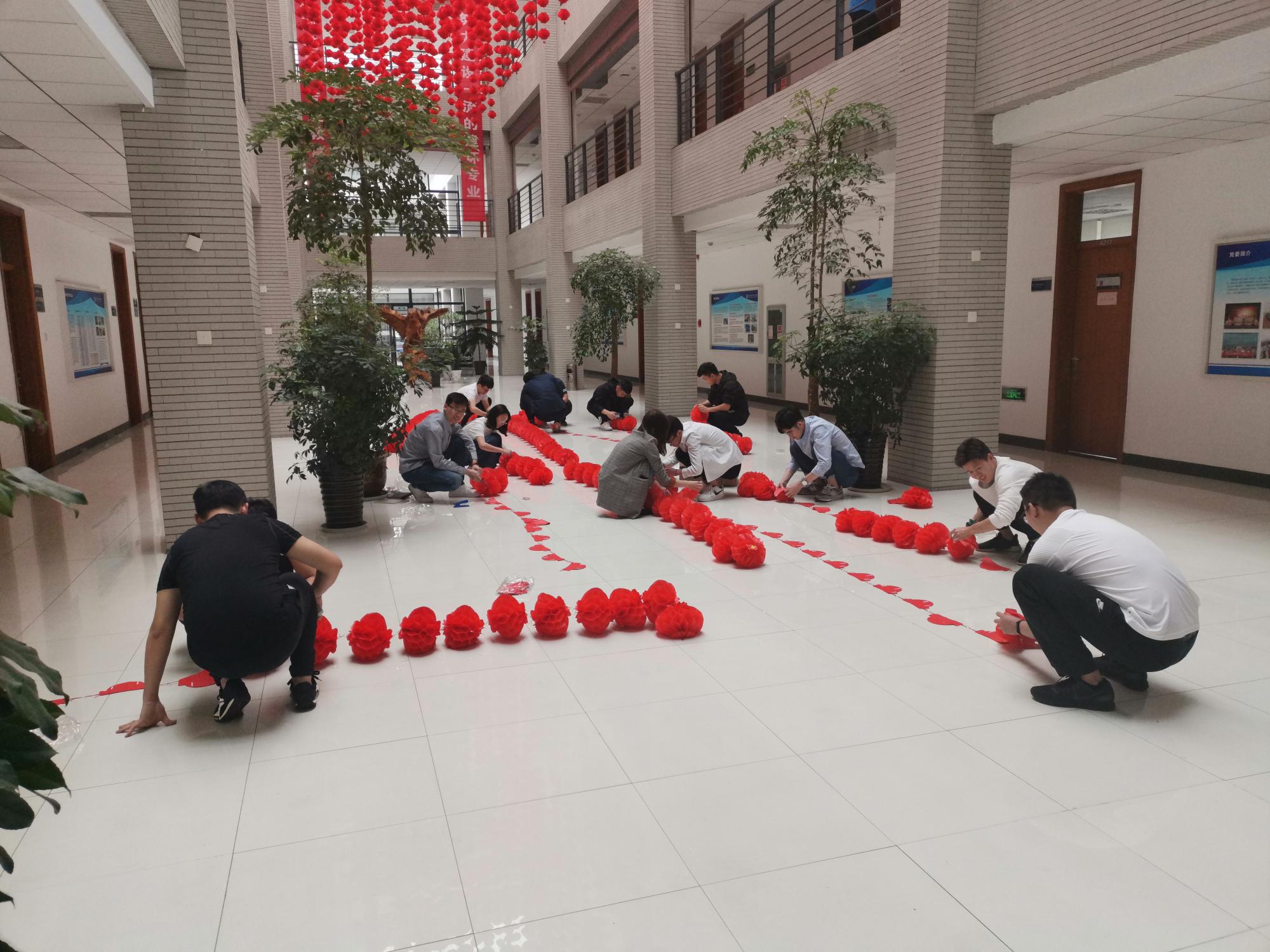 在这次挂灯笼活动中,发展对象踊跃报名,积极参与到院庆活动中。大家一起团结协作,各有分工。有的把灯笼系在一起,有的拿胶带把灯笼铺展开。在大家的齐心协力之下,成功完成了挂灯笼的任务。一个一个火红的灯笼装饰了学院二楼大厅,给学院增添了浓厚的色彩,也寓意着学院的未来红红火火。