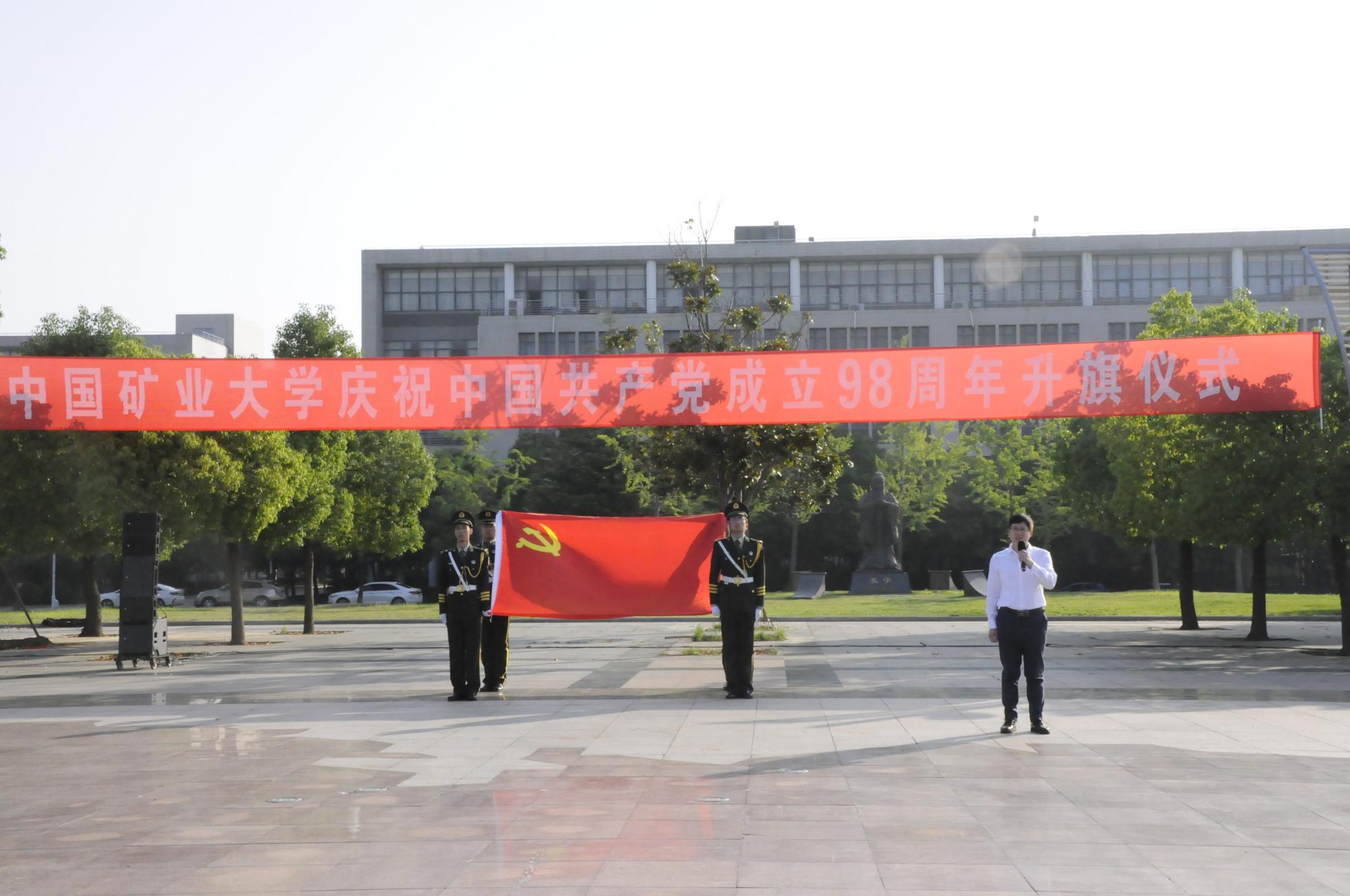 庆祝中国共产党成立98周年升旗仪式在南湖校区东门国旗广场举行,校党委书记刘波,校长、校党委副书记宋学锋,校党委副书记蔡世华、王增国出席升旗仪式,党群部门主要负责人,校学生工作指导委员会成员单位主要负责人,各学院(部)相关负责人、教师代表、专兼职辅导员和学生党员代表参加仪式。王增国副书记主持活动。学院党委书记吕恒林,团委书记、专兼职辅导员、教师和学生党员代表参与了本次仪式。