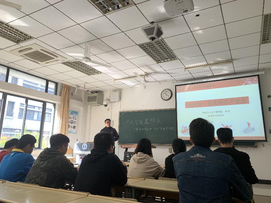 10月20日,交建本科生党支部在博四B102启动本学期第一次主题党课——如何做一名优秀的共产党员,本次党课由党支部书记李亮老师主讲,交建本科生党支部全体党员出席。