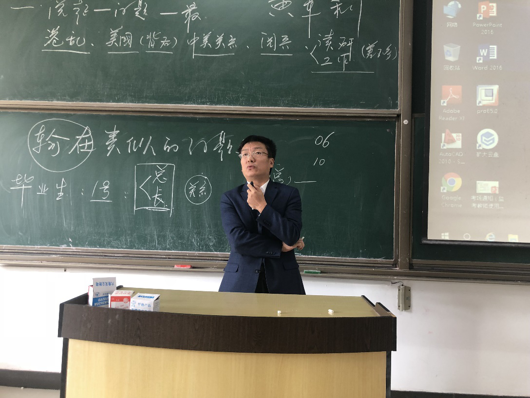 从国家的层面分析讲解之后,黄老师引导同学们思考如何从自身方面更好的发展。他讲到,我们新时代的大学生既要有“为往圣继绝学,为万世开太平”的胸襟与气度,还要有“不为良相,便为良医”的情怀。踏实认真做好每天应该做的每一件事,为社会主义建设添砖加瓦。最后,黄军利老师以习近平总书记在庆祝中华人民共和国成立70周年大会上发表重要讲话“没有任何力量能够撼动我们伟大祖国的地位,没有任何力量能够阻挡中国人民和中华民族前进的步伐”为结束语,号召大家“坚定文化自信,建设社会主义文化强国”。