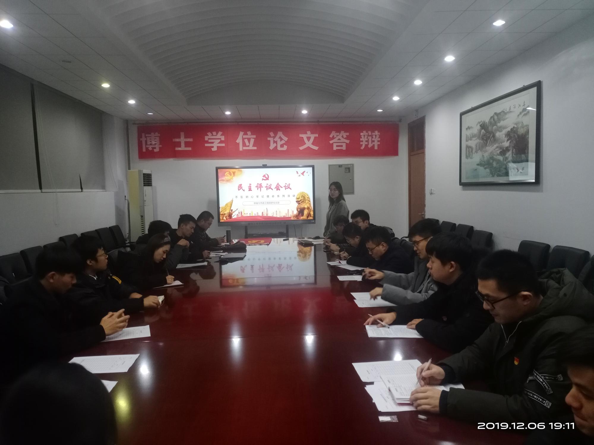 11月6日晚,桥隧与市政工程党支部召开“不忘初心、牢记使命”主题教育之专题组织生活会和民主评议,本次会议由党支部书记邵婧舒主持,邀请到道桥系教职工指导老师柳志军作为督导老师,支部全体党员及发展对象参加。