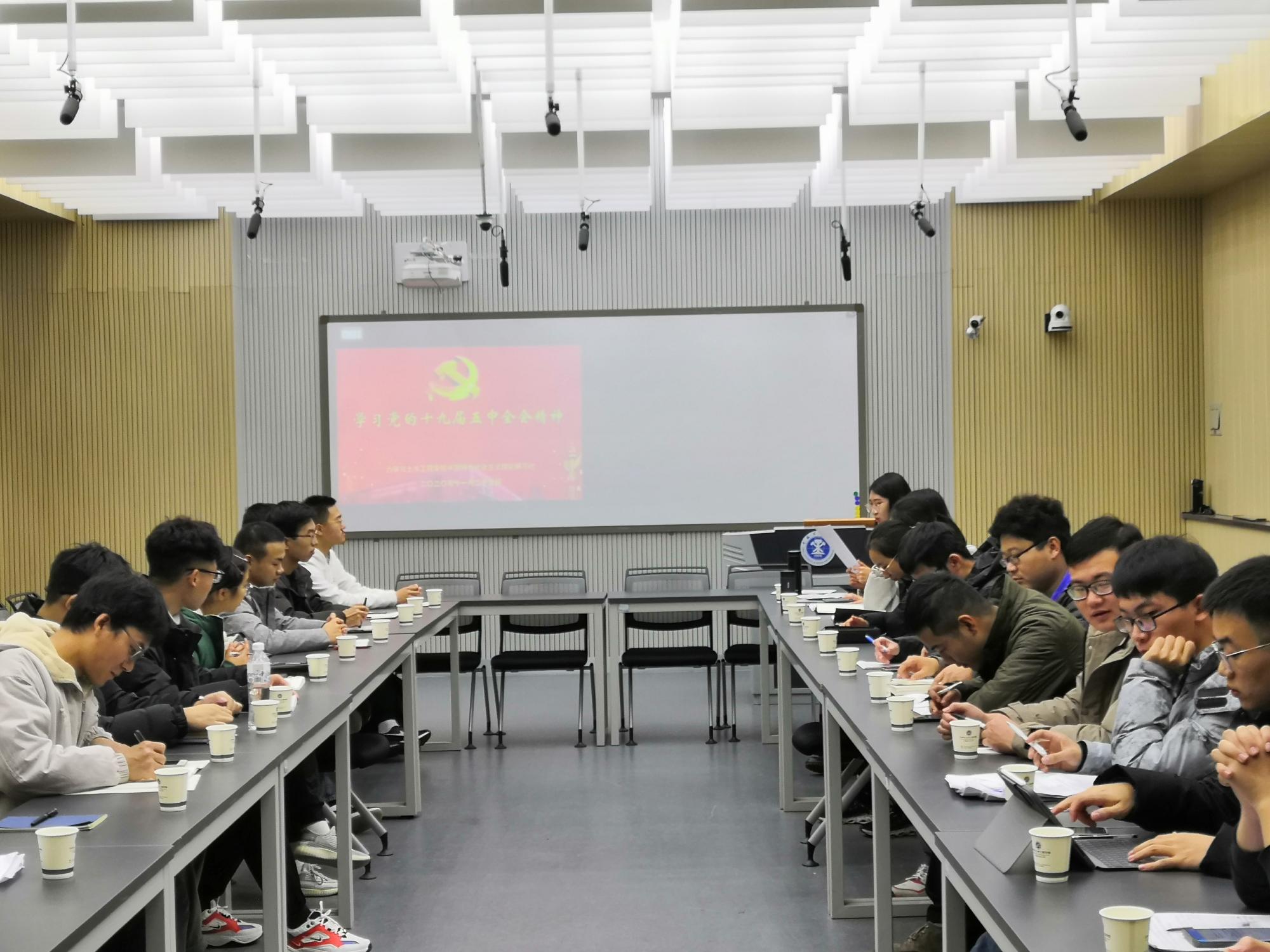 11月25日下午4时整,学院党员工作站联合理论研习社在学院楼B201举行了本学年第二次理论研讨会。本次研讨会以学习“党的十九届五中全会精神”为主题,由学院研究生党员工作站政治部部长苏蓉主持,学院党员工作站政治部、宣传部和理论研习社部分成员、部分学生党支部书记代表参加了此次会议。