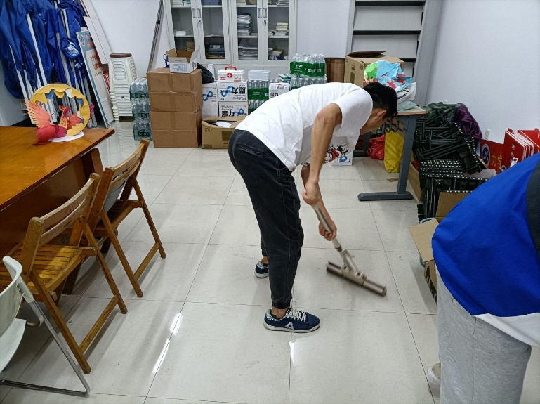 晚上9:30,清扫活动开始。支部党员谢宇鸿、杨帆、张隆基等14人参与清扫。参与人员分工明确,清扫活动进行地如火如荼。晚上10:30活动结束。