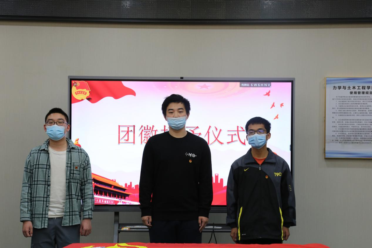 在学院楼A220举办“不忘初心、牢记使命”新团员入团仪式。本次入团仪式由学院团委学生副书记马小川、学院团委组织部部长张锌亿主持,20级工程力学2班曹旭杰、21级土木2班陈镆、20级建环(合作办学)1班祁俊文三位同学在本次入团仪式中正式成为共青团员。