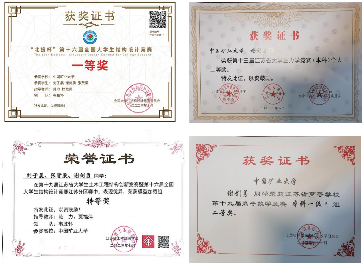 曾获2022-2023学年国家奖学金、2021-2022学年国家奖学金;曾获第十六届“北投杯”全国大学生结构设计竞赛一等奖、江苏省土木工程结构创新竞赛特等奖、江苏赛区第十五届全国大学生数学竞赛一等奖、江苏省大学生力学竞赛二等奖、江苏省第十九届高等数学竞赛二等奖等多项奖项;获评国产无码