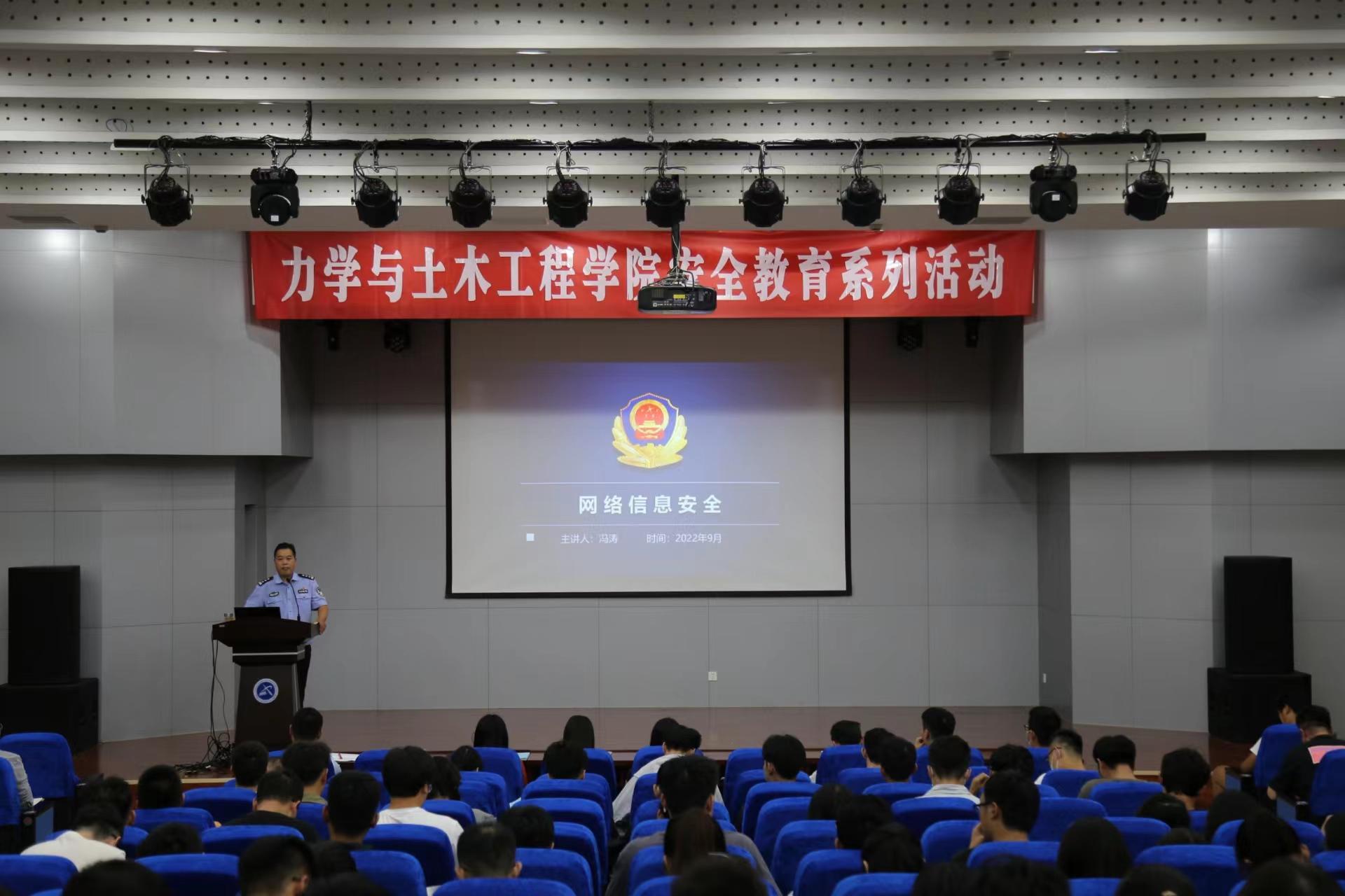 9月23日下午,学院邀请徐州市内保支队副队长冯涛在力土楼A108报告厅为全体2022级研究生新生作网络信息安全专题讲座。讲座由学院党委副书记李智主持。