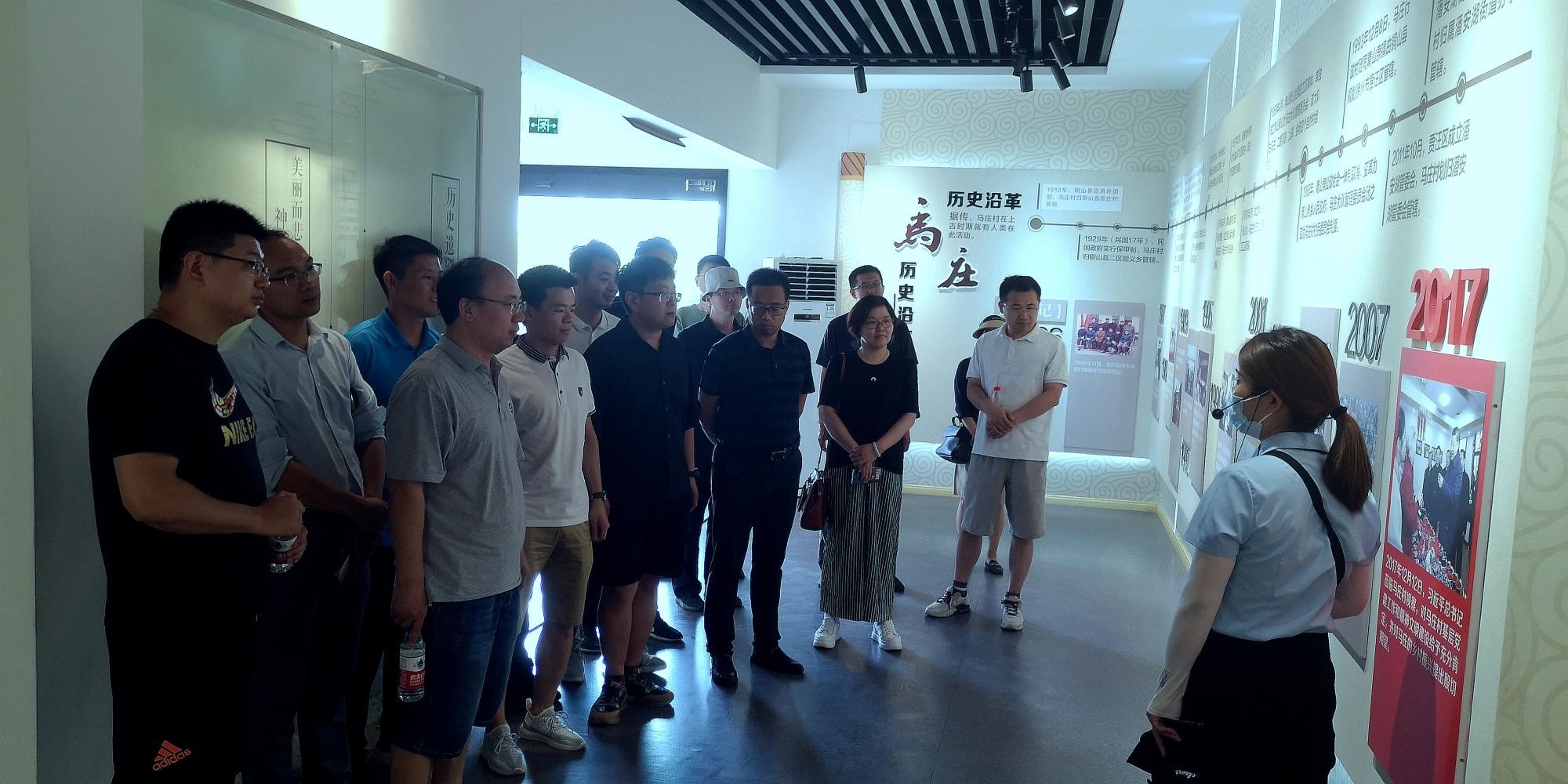 支部老师们沿着习近平总书记视察马庄村走过的路线,首先来到位于马庄文化礼堂二楼的村史馆,了解马庄村的发展历史;随后参观了支部党员活动室、香包制作室、综合服务室和马庄村文化礼堂等,了解了马庄村的历史沿革、党建工作、民俗文化、对外交流和生态治理等情况,实地感受“马庄精神”——一马当先的勇气,跃马扬鞭的速度,马不停蹄的毅力,马到成功的效率。