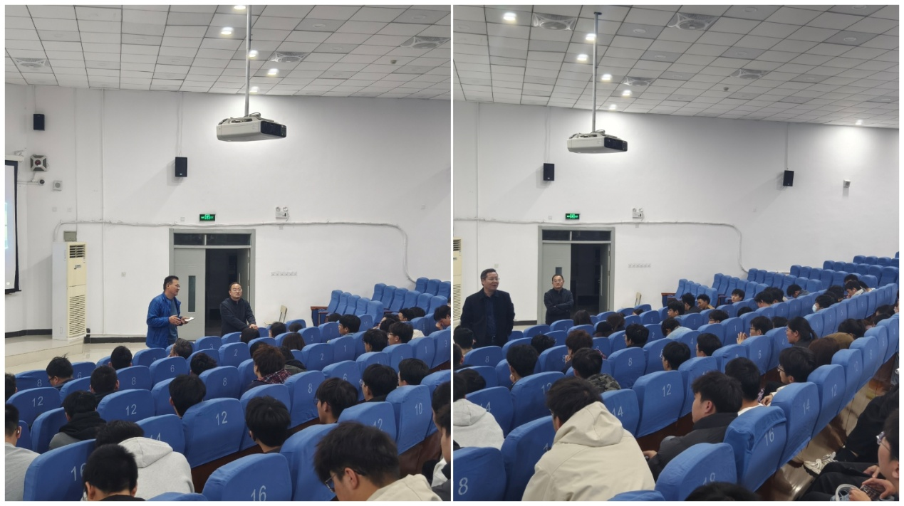 活动开始,道桥与地下工程系副主任王亮亮结合自身从业经历,从行业发展与学生成长角度展开分享。首先,他为同学们介绍了专业培养方案,告知同学们大学四年应掌握的知识和技能。他以铁路建设项目为例,指出土木工程师需具备扎实的专业知识、实践能力和吃苦耐劳的精神,并客观分析行业趋势:“当前土木行业正经历智能化、绿色化转型,传统岗位需求变化显著,但基础设施建设仍存在结构性机遇。”他建议学生注重专业基础学习,同时关注BIM技术、智能建造等前沿领域,提升复合型竞争力。