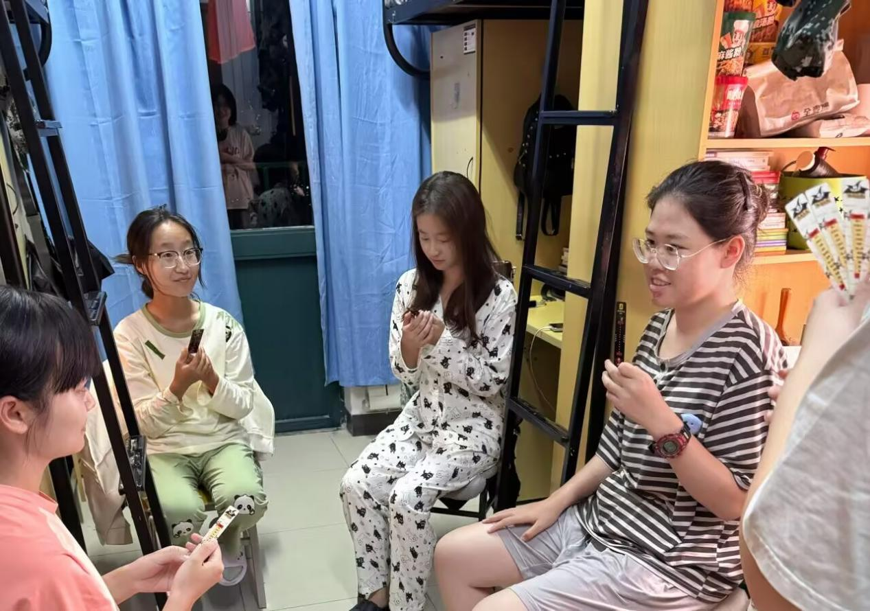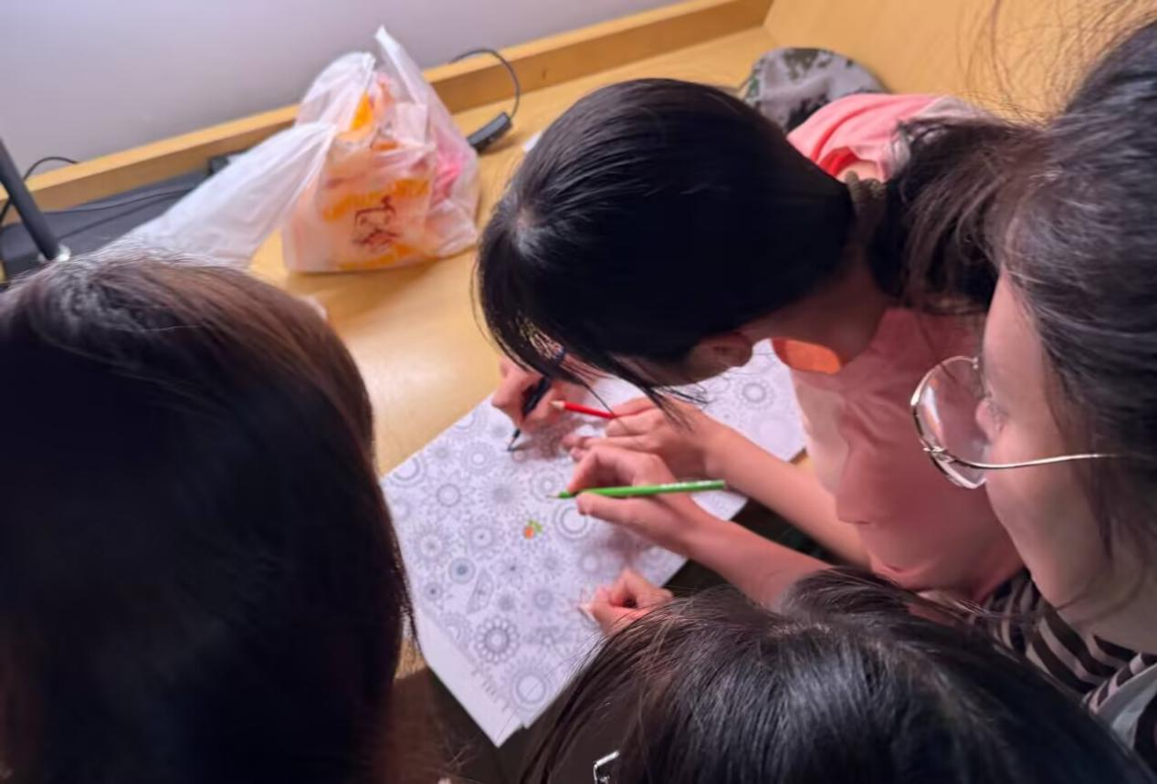 女生宿舍率先开启了“谁是卧底”的烧脑之旅。大家围坐在一起,在推理和分析中斗智斗勇,欢声笑语不断。随后进行手绘游戏,宿舍成员们齐心协力,围绕心理健康主题展开创作,用缤纷的色彩和创意的构图,将内心的想法与感受淋漓尽致地展现在画纸上。在女生宿舍的游戏间隙,主持人讲解了情绪表达和倾听的重要性,鼓励同学们在宿舍生活中要勇于表达自己的情感,同时也要学会倾听他人的心声。