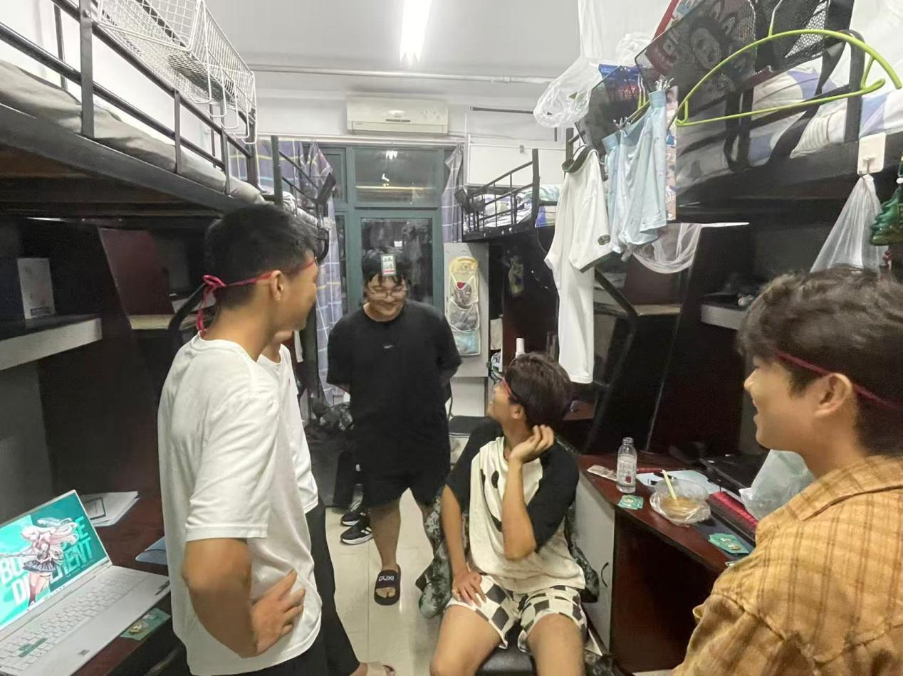 男生宿舍的“不要猜挑战”同样精彩非凡。参与者们需要在规定时间内,通过各种动作和表情来传递信息,在紧张刺激的挑战中,大家充分发挥自己的想象力和表现力。主持人分享了非言语沟通在人际交往中的作用,以及如何通过观察他人的肢体语言来更好地理解他人的情绪和想法,这个游戏极大地考验了宿舍成员之间的默契,在一次次的尝试与失败中,大家逐渐学会了如何更有效地沟通和配合,共同克服困难完成挑战。